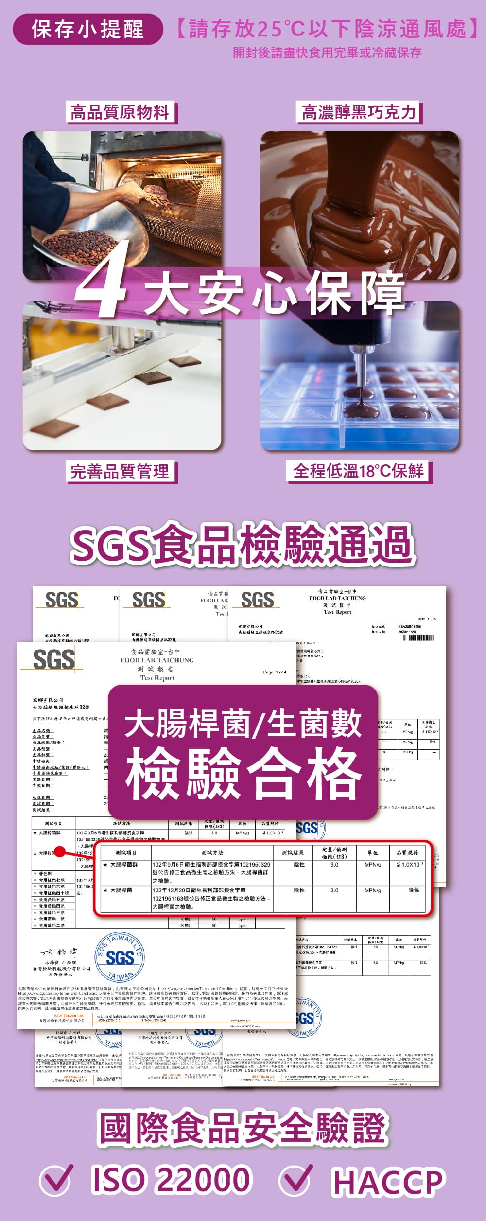注意事項:本產品為高品質巧克力製品,若溫度高於25℃時,會有融化現象,屬正常現象請安心食用。