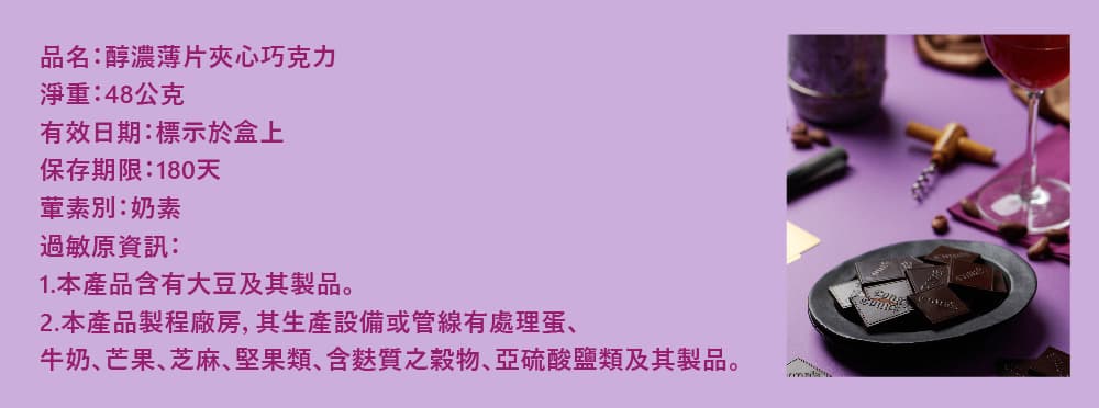 品名:醇濃薄片夾心巧克力