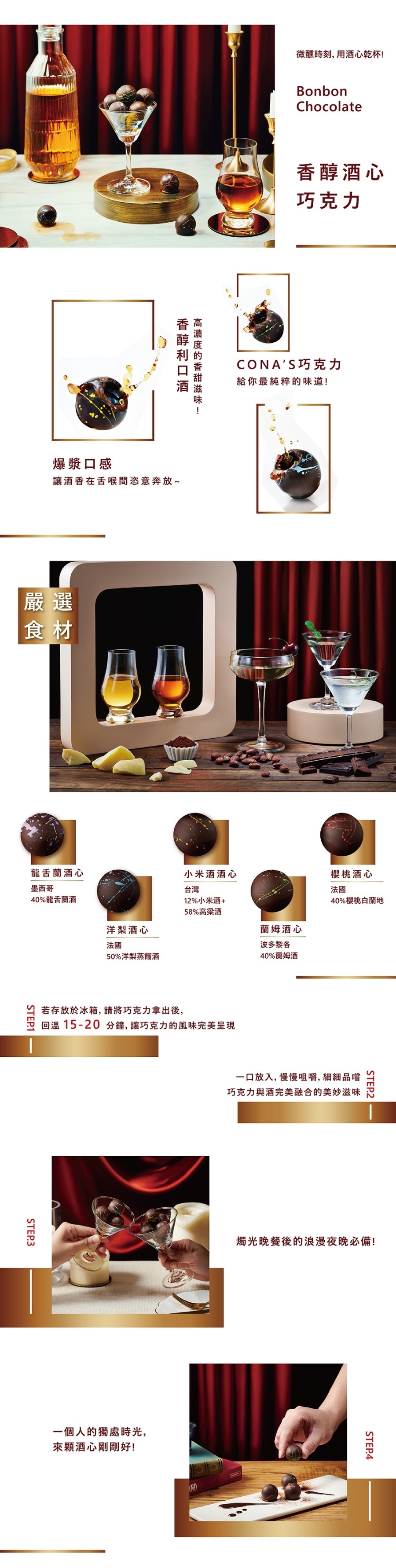 微醺品味|(含餡)香醇酒心精裝禮盒(6入隨機/盒) 附贈提袋 | Cona's妮娜巧克力