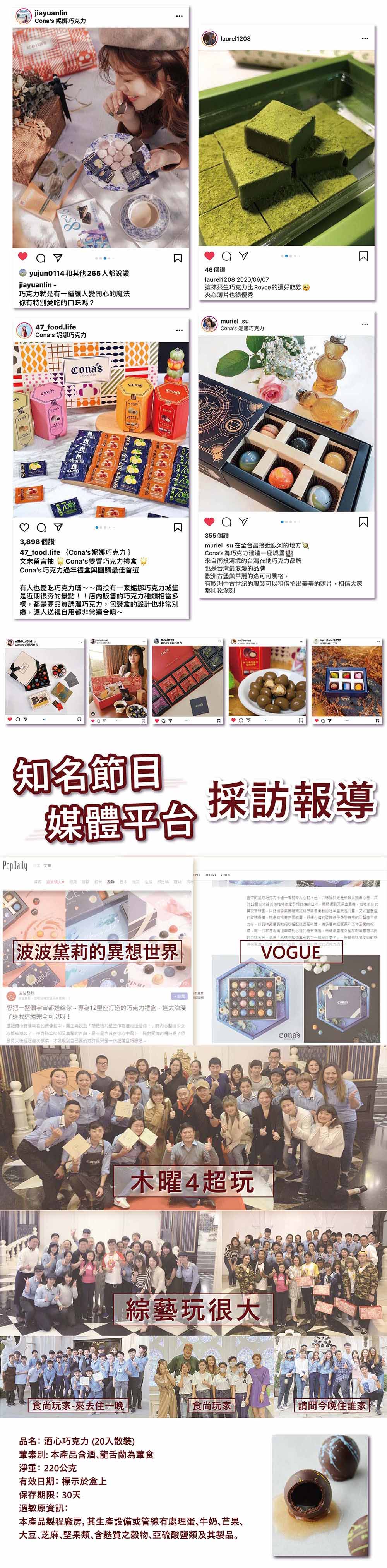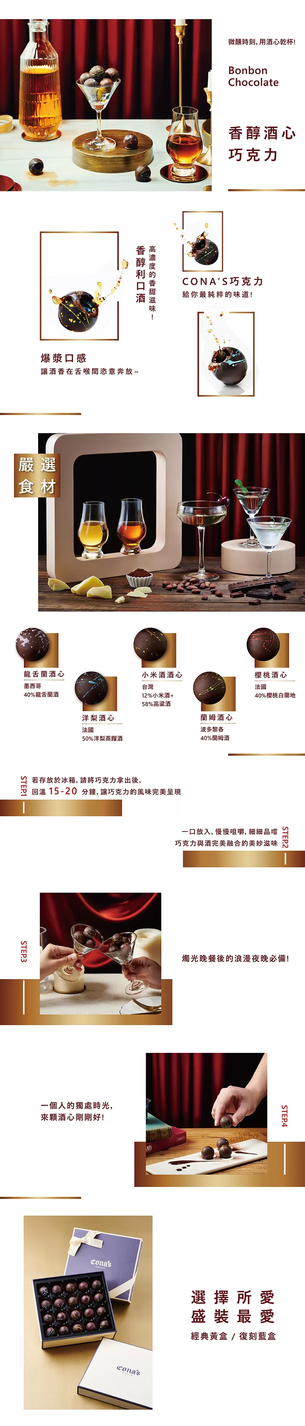微醺品味|(含餡)香醇酒心精裝禮盒(20入/盒)–附贈小卡及提袋 Cona’s 妮娜巧克力 含餡 | Cona's妮娜巧克力
